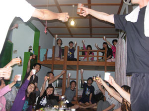 基礎練に始まり、フォーメーション練習、そしてパーティーに終わる・・・とても真面目にやってんな・・・と思いきや、やはり岡社らしく、夜のテンションは素晴らしいものでした★☆★